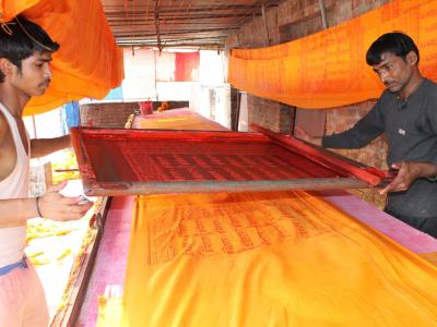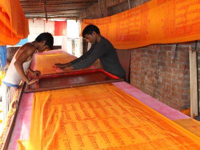 ऐसे ही एक मकान की छत पर रामनामी दुपट्टा छाप रहे अखलाक और अब्दुल बताते हैं कि बाम्बे के मतीन सेठ की फर्म से उन्हे राम नामी दुपट्टा छापने का काम मिला है. एक दुपट्टे की छपाई के लिए उन्हे 30 पैसा मिलता है. मतीन सेठ उन्हे पीले रंग का बोस्की कपडा गांठों-गांठों में भिजवाते हैं.