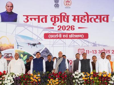 रायसेनः मध्य प्रदेश के अन्नदाता के लिए 11 अप्रैल का दिन बेहद खास रहा। उन्हें बीज से बाजार तक का रास्ता दिखाया गया। उनकी जानकारी के लिए बीज, उर्वरक, उद्यान, सिंचाई प्रबंधन, बैंक से संबंधित समस्याओं का हल, मशीनों का प्रदर्शन किया गया। किसानों को कई तरह के स्टॉल द्वारा किसानी के कई पहलुओं की जानकारी दी गई। कार्यक्रम में किसानों के लिए 'ई-फॉर्म्स' एप भी लॉन्च किया गया। मौका था रायसेन के दशहरा मैदान पर आयोजित 'उन्नत कृषि महोत्सव 𝟐𝟎𝟐𝟔' का। कार्यक्रम में कई योजनाओं के हितग्राहियों को हितलाभ भी वितरित किया गया। उन्नत कृषि महोत्सव 13 अप्रैल तक आयोजित किया जाएगा। कार्यक्रम में मुख्यमंत्री डॉ. मोहन यादव के साथ-साथ रक्षा मंत्री राजनाथ सिंह, केंद्रीय कृषि मंत्री शिवराज सिंह चौहान सहित कई जन-प्रतिनिधि भी मौजूद थे।