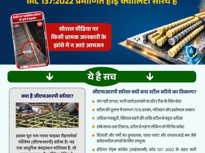 स्टील के सरियों की तुलना में मजबूत, जंगरोधी और टिकाऊ है जीएफआरपी। आईआरसी कोड 137: 2022 की गाइडलाइन्स के अनुसार किया जा रहा है इस्तेमाल।