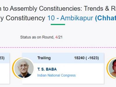 कांग्रेस प्रदेश इकाई के सबसे बड़ा चेहरा और मौजूदा उप-मुख्यमंत्री टीएस सिंह देव अपनी विधानसभा सीट अंबिकापुर से पिछड़ रहे हैं। उन्हें 18420 वोट मिलते हुए दिख रहे हैं, जबकि भाजपा की ओर से दम ठोक रहे राजेश अग्रवाल को 19863 वोट मिल चुके हैं। अभी काउंटिंग जारी है।