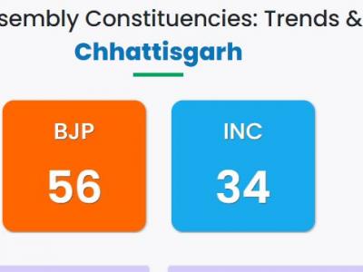 आयोग से जारी आंकड़ों के अनुसार, रुझानों में भाजपा को 46.36 फीसदी, कांग्रेस को 42.14 फीसदी, बहुजन समाज पार्टी (बसपा) को 2.10 फीसदी तथा अन्य को 5.46 फीसदी वोट मिले हैं। छत्तीसगढ़ में पहली बार 2003 में हुए विधानसभा चुनाव में भाजपा को 50 सीट मिली थीं तथा 39.26 फीसदी मत प्राप्त हुए थे। वहीं पार्टी को 2008 में 50 सीट एवं 40.33 फीसदी मत, 2013 में 49 सीट तथा 41.04 फीसदी मत और 2018 में 15 सीट एवं 32.97 फीसदी मत मिले थे।