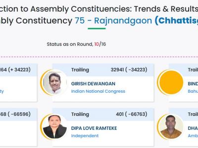 राजनांदगांव सीट पर पूर्व सीएम रमन सिंह को 67164 वोट मिल चुके हैं, जबकि गिरीश देवांगन कांग्रेस की ओर से रेस में रहे। लेकिन रमन सिंह के सामने नहीं टिके और उन्हें अब 32941 वोट मिले हैं। राज्य में विधानसभा के लिए 90 सीटें हैं और बहुमत पाने के लिए किसी भी पार्टी को 46 सीटें चाहिए होती हैं।