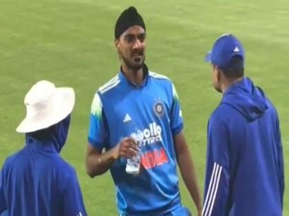 वीडियो में देखा जा सकता है कि अर्शदीप ड्रिंक ले रहे हैं और सपोर्ट स्टाफ के साथ किसी गंभीर चर्चा में बिज़ी हैं। हालांकि, फिर वह फैन को देखते हैं और कथित तौर पर उसके कमेंट्स का जवाब देते हुए कहते हैं, "चुप बे... ।" यह वीडियो सोशल मीडिया पर तेज़ी से शेयर किया जा रहा है।