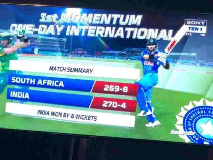 भारत ने पहले वनडे में दक्षिण अफ्रीका से जीत के लिए मिले 270 रन के लक्ष्य को 45.3 ओवरों में ही 4 विकेट खोकर हासिल कर लिया था। दक्षिण अफ्रीका ने कप्तान फाफ डु प्लेसिस (120) के शतक की बदौलत 50 ओवर में 8 विकेट पर 269 रन बनाए। (पढ़ें: भारत ने तोड़ा दक्षिण अफ्रीका की लगातार 17 जीत का सिलसिला, पहले भी थाम चुका है इन टीमों का विजय रथ)