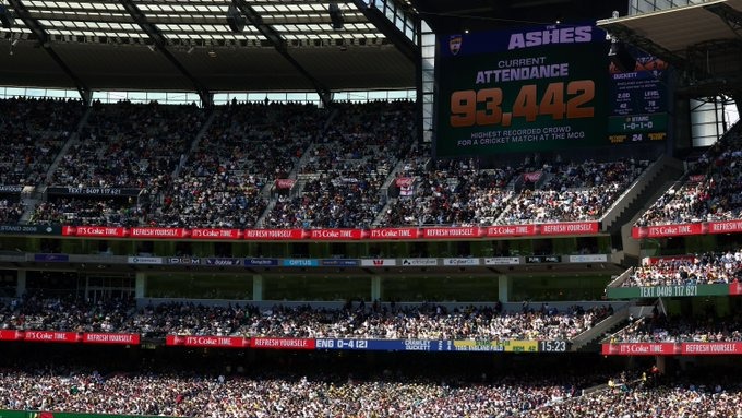 मेलबर्नः आस्ट्रेलियाई टीम 152 रन पर आउट हो गई लेकिन इसके बावजूद इंग्लैंड पर पहली पारी में 42 रन की बढ़त बना ली और चौथे एशेज टेस्ट के पहले दिन शुक्रवार को रिकॉर्ड 20 विकेट गिर गए। मेलबर्न क्रिकेट ग्राउंड पर ‘बॉक्सिंग डे’ टेस्ट के लिए रिकॉर्ड 94199 दर्शक पहुंचे थे जबकि पिछला रिकॉर्ड 93013 का था जो आस्ट्रेलिया और न्यूजीलैंड के बीच 2015 विश्व कप फाइनल के दौरान दर्ज किया गया था। आस्ट्रेलिया ने पहले दिन का खेल समाप्त होने तक दूसरी पारी में बिना किसी नुकसान के चार रन बनाये थे और उसके पास अब 46 रन की बढ़त है।