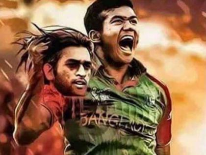 2. बांग्लादेशी गेंदबाज के हाथ में धोनी के कटे सिर की तस्वीर