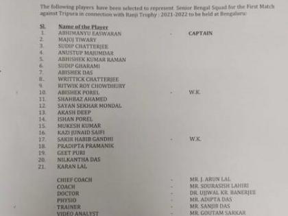 टीम: अभिमन्यु ईश्वरन (कप्तान), मनोज तिवारी, सुदीप चटर्जी, अनुस्तुप मजूमदार, अभिषेक रमन, सुदीप घरामी, अभिषेक दास, ऋत्विक चटर्जी, ऋत्विक रॉय चौधरी, अभिषेक पोरेल, शाहबाज अहमद, सयान शेखर मंडल, आकाश दीप, ईशान पोरेल, मुकेश कुमार, काजी जुनैद सैफी, साकिर हबीब गांधी, प्रदीप्त प्रमाणिक, गीत पुरी, नीलकंठ दास और करण लाल।