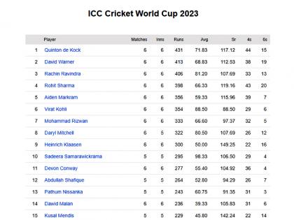लखनऊ में इंग्लैंड पर 100 रन की जीत के साथ भारत अपनी छठी जीत के बाद तालिका में शीर्ष पर पहुंच गया। शुक्रवार को चेन्नई में पाकिस्तान के खिलाफ एक विकेट की रोमांचक जीत के बाद दक्षिण अफ्रीका दूसरे स्थान पर है। गत चैंपियन इंग्लैंड छह मैचों में सिर्फ दो अंकों के साथ सबसे निचले स्थान पर है।