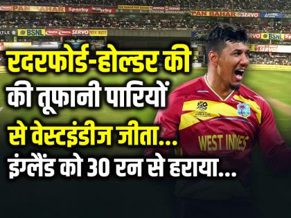HighlightsENG vs WI: रदरफोर्ड-होल्डर की तूफानी पारियों से वेस्टइंडीज जीता, इंग्लैंड को 30 रन से हरायाT20 World Cup 2026 Match 15: वेस्टइंडीज की 30 रन से जीत, इंग्लैंड 166 पर ढेररदरफोर्ड के 76 रन, मोती-चेज की फिरकी का जादू, इंग्लैंड T20 वर्ल्ड कप में हारा