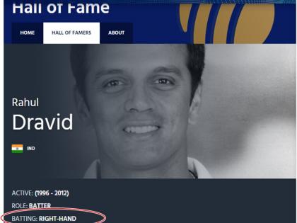 भारत के पूर्व क्रिकेटर राहुल द्रविड़ को लेकर कुछ दिन पहले आईसीसी की बड़ी भूल सामने आई। पिछले साल द्रविड़ आईसीसी हॉल ऑफ फेम में शामिल होने वाले पांचवें भारतीय खिलाड़ी बने थे। लेकिन आईसीसी की वेबसाइट पर उन्हें बाएं हाथ का बल्लेबाज बताया गया है, यही बात भारतीय फैंस को पसंद नहीं आई।
