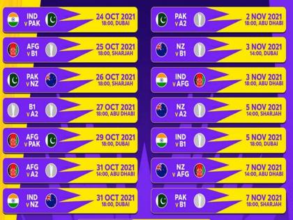भारत का तीसरा मुकाबला तीन नवंबर को अफगानिस्तान के खिलाफ है। इसे अबु धाबी में खेला जाएगा। इसके बाद भारत 5 नवंबर को ग्रुप-बी से वर्ल्ड कप में क्वॉलीफाई करने वाले टीम से भिड़ेगा। देखें ग्रुप- 2 का मैच शेड्यूल