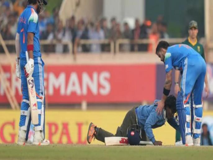IND vs SA 1st ODI: रविवार को साउथ अफ्रीका के खिलाफ तीन मैचों में से पहले मैच में विराट कोहली के 52वें वनडे शतक के तुरंत बाद रांची के जेएससीए इंटरनेशनल स्टेडियम कॉम्प्लेक्स में एक फैन ने सिक्योरिटी तोड़कर उनके पैर छू लिए। इस शतक के साथ, कोहली के अब साउथ अफ्रीका के खिलाफ सबसे ज़्यादा शतक (छह) हो गए हैं, और उन्होंने सचिन तेंदुलकर और डेविड वॉर्नर के पांच-पांच शतकों को पीछे छोड़ दिया है।