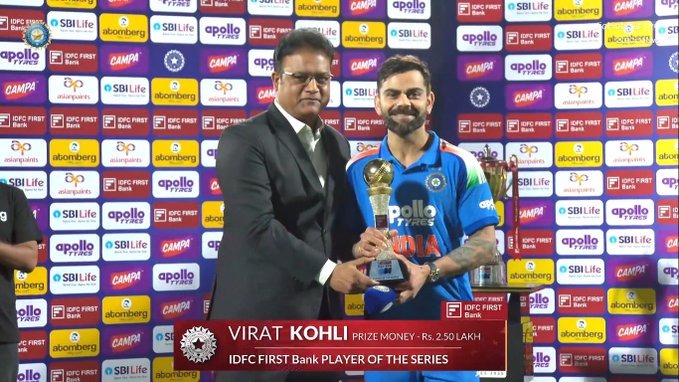 किसी भी खिलाड़ी ने वनडे में किसी भी मैदान पर इससे ज़्यादा औसत से रन नहीं बनाए हैं। विशाखापत्तनम में कोहली के वनडे स्कोर: 118, 117, 99, 65, 157*, 0, 31, 65* अब उनके नाम वनडे में लगातार चार या उससे ज़्यादा पारियों में 50 से ज़्यादा रन बनाने का नौवां रिकॉर्ड है। कुमार संगकारा और केन विलियमसन के बाद सबसे ज़्यादा चार-चार पारियां हैं।