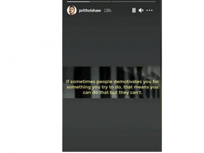 पृथ्वी शॉ ने 20 दिसंबर को इंस्टाग्राम स्टोरी में लिखा था, "अगर आप कुछ करने की कोशिश कर रहे हो और लोग आपको हतोत्साहित करने की कोशिश करेंत तो इसका मतलब है कि आप उस काम को कर सकते हैं, लेकिन वो नहीं कर सकते।"