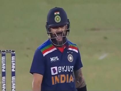 भारतीय पारी के छठे ओवर में विराट कोहली ने इंग्लैंड के तेज गेंदबाज मार्क वुड की 147 किमी/घंटा की रफ्तार वाली बाउंसर गेंद पर जोरदार छक्का जड़ दिया। इस छक्का को लगाने के बाद कोहली ने मस्ती भरे अंदाज में रोहित शर्मा को चिढ़ाने की कोशिश की। जिसके बाद रोहित शर्मा ने हंसते हुए कोहली के शॉट की सरहाना की। इन दोनों का यह वीडियो तेजी से वायरल हो रहा है।