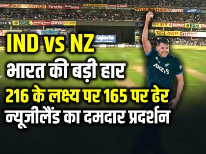IND Vs NZ 4th T20 Highlights: न्यूजीलैंड ने पांच मैचों की श्रृंखला के चौथे टी20 अंतरराष्ट्रीय में बुधवार को यहां भारत को 50 रन से शिकस्त दी। शुरुआती तीन मैचों में हार का सामना करने वाली न्यूजीलैंड की टीम ने सात विकेट पर 215 रन बनाने के बाद भारत को 18.4 ओवर में 165 रन पर आउट कर दिया। भारत के लिए शिवम दूबे ने 23 गेंद में 65 जबकि रिंकू सिंह ने 30 गेंद में 39 रन का योगदान दिया। न्यूजीलैंड के लिए मिचेल सैंटेनर ने तीन जबकि जैकब डफी और ईश सोढ़ी ने दो-दो विकेट चटकाये।