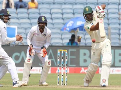 फॉलोऑन खेलने साउथ अफ्रीका जब दूसरी पारी में उतरी, तो दूसरी ही बॉल पर सलामी बल्लेबाज एडेन मार्करम (0) चलते बने। उनके बाद ब्र्यून (8) और कप्तान फाफ डु प्लेसिस भी कुछ खास नहीं कर सके।