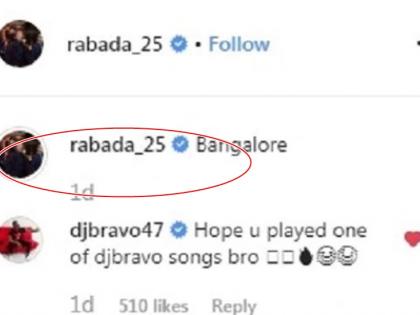 टेस्ट सीरीज से पहले रबाडा 'डीजे' की भूमिका में नजर आए। उन्होंने इसकी तस्वीर अपने इंस्टाग्राम अकाउंट पर 'बेंगलुरु' कैप्शन के साथ शेयर की, लेकिन साथी खिलाड़ी ड्वेन ब्रावो ने उन्हें ट्रोल कर दिया।