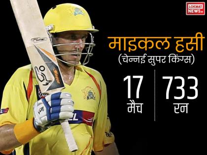 सुरेश रैना : चेन्नई सुपर किंग्स के बल्लेबाज सुरेश रैना ने साल 2013 के आईपीएल में खेले 18 मैचों में 648 रन बनाए थे और ऑरेंज कैप की लिस्ट में चौथे नंबर पर रह गए थे। रैना ने इस सीजन में एक शतक और चार अर्धशतक भी लगाया था।
