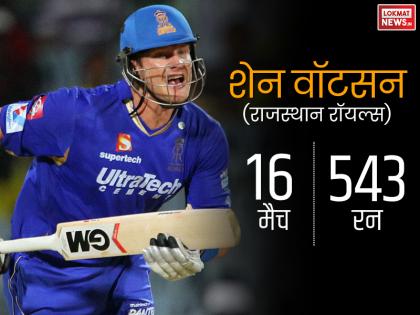 शेन वॉटसन : राजस्थान रॉयल्स के इस खिलाड़ी ने बेहतरीन प्रदर्शन करते हुए सबसे ज्यादा रन बनाने के मामले में टॉप 5 में अपनी जगह बनाई। वॉटसन ने 16 मैच खेलकर 38.78 की औसत से 543 रन बनाए।