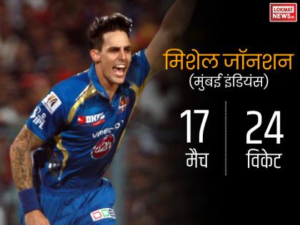मिशेल जॉनसन : मुंबई इंडियंस के बेहतरीन गेंदबाज मिशेल जॉनसन ने पर्पल कैप की लिस्ट में अपने प्रदर्शन से टॉप 5 में जगह बनाई और अपनी टीम को चैंपियन बनाने में अहम भूमिका निभाई। उन्होंने 17 मैचों में 459 रन देकर 24 विकेट लिए थे।
