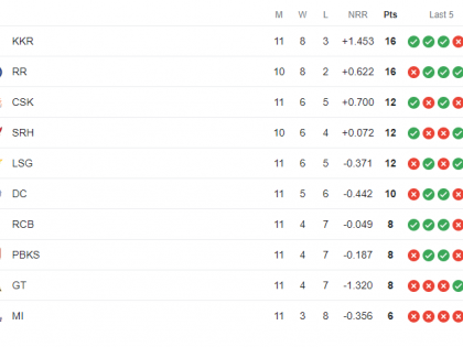 राजस्थान रॉयल्स और केकेआर ने प्लेऑफ में अपनी जगह लगभग पक्की कर ली है। तीसरी और चौथी टीम के लिए रेस तगड़ी है। चेन्नई सुपर किंग्स, सनराइजर्स हैदराबाद और लखनऊ सुपर जायंट्स सभी 12 अंकों पर बराबरी पर हैं। सनराइजर्स ने चेन्नई और लखनऊ से एक मैच कम खेला है और सोमवार, 6 मई को वह मुंबई इंडियंस के खिलाफ भिड़ेंगे। अगर हैदराबद यह मैच जीत जाती है तो वह प्लेऑफ में जगह पक्की करने के लिए प्रबल दावेदार बन जाएगी। सनराइजर्स फिलहाल तीसरे स्थान पर हैं, उसके बाद चेन्नई सुपर किंग्स और लखनऊ सुपर जायंट्स हैं।