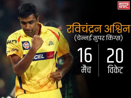 रविचंद्रन आश्विन : चेन्नई सुपरकिंग्स के बेहतरीन गेंदबाज रविचंद्रन अश्विन ने पर्पल कैप की लिस्ट में अपने प्रदर्शन से टॉप 5 में शानदार एंट्री की। उन्होंने 16 मैचों में 388 रन देकर 20 विकेट लिए थे।