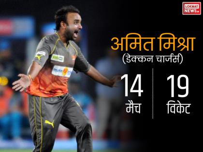 अमित मिश्रा : डेक्कन चार्जर्स के खिलाड़ी अमित मिश्रा ने साल 2011 के आईपीएल में 14 मैचों में 358 रन देकर 19 विकेट झटके थे और सबसे ज्यादा विकेट लेने वाले गेंदबाजों की लिस्ट में पांचवें नंबर पर रहे थे।