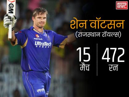 शेन वॉटसन : साल 2008 की विजेता रही राजस्थान रॉयल्स के बल्लेबाज शेन वॉटसन ने टूर्नामेंट में 15 मैच खेले थे, लेकिन सिर्फ 472 रन बना पाए थे। शेन वॉटसन सबसे ज्यादा रन बनाने के मामले में चौथे नंबर पर थे।