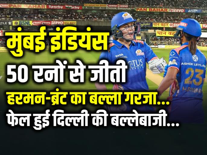 MI vs DC WPL 2026: कप्तान हरमनप्रीत कौर (नाबाद 74) के अर्धशतक, नटाली साइवर ब्रंट (70 रन, दो विकेट) के हरफनमौला प्रदर्शन और निकोला कैरी की शानदार गेंदबाजी से मुंबई इंडियंस ने शनिवार को यहां महिला प्रीमियर लीग (डब्ल्यूपीएल) मैच में दिल्ली कैपिटल्स को 50 रन से हरा दिया। मुंबई इंडियंस के चार विकेट पर 195 रन के प्रतिस्पर्धी स्कोर के जवाब में दिल्ली कैपिटल्स की टीम चिनेली हेनरी (33 गेंद में 56 रन) के अर्धशतक के बावजूद 19 ओवर में 145 रन पर सिमट गई। कैरी और अमेलिया केर के तीन तीन विकेट झटके। साइवर ब्रंट ने अर्धशतकीय पारी खेलने के अलावा दो विकेट भी अपने नाम किए। शबनीम इस्माइल को एक विकेट मिला जबकि संस्कृति गुप्ता ने अपने एकमात्र ओवर में अंतिम विकेट झटका। रॉयल चैलेंजर्स बेंगलुरु के खिलाफ खराब प्रदर्शन के एक दिन बाद 33 वर्षीय ऑलराउंडर साइवर ब्रंट ने शानदार वापसी करते हुए 46 गेंद की पारी में 13 चौके जड़े।