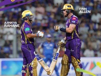 मुंबई: वानखेड़े स्टेडियम में मुंबई इंडियंस के खिलाफ मुकाबले में कोलकाता नाइट राइडर्स ने धमाकेदार शुरुआत की और हार्दिक पांड्या की जमकर धुनाई कर दी। चौथा ओवर फेंकते हुए, केकेआर के कप्तान अजिंक्य रहाणे और फिन एलन ने पांड्या की गेंदों को मैदान के हर कोने में पहुंचाया और उनके ओवर से 25 रन बटोरे।