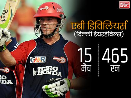 एबी डिविलियर्स : साउथ अफ्रीका के पूर्व क्रिकेटर एबी डिविलियर्स ने साल 2009 से आईपीएल में दिल्ली डेयरडेविल्स (अब दिल्ली कैपिटल्स) की ओर से खेलते हुए 15 मैचों में 51.66 की औसत और 130.98 की स्ट्राइक रेट से 465 रन बनाए थे। इस दौरान उन्होंने एक शतक और तीन अर्धशतक लगाए थे।