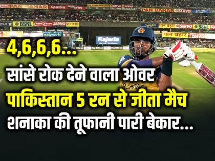 Highlights4,6,6,6... सांसे रोक देने वाला आखिरी ओवर, पाकिस्तान 5 रन से जीता मैचPak vs SL: पाकिस्तान जीता, लेकिन वर्ल्ड कप से बाहरशाहीन शाह अफ़रीदी बने हीरो, आख़िरी ओवर में दिलाई पाकिस्तान को सांस रोक देने वाली जीतदासुन शनाका की तूफानी पारी बेकार, पाकिस्तान ने रोमांचक मुकाबला जीताआख़िरी दो गेंदों में पलटा मैच, पाकिस्तान ने श्रीलंका से छीनी जीत