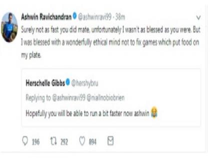 दक्षिण अफ्रीका के पूर्व बल्लेबाज हर्शल गिब्स को रविचंद्रन अश्विन से सोशल मीडिया पर एक मजाक महंगा पड़ गया। हालांकि, अश्विन ने भी बाद में विवाद की गंभीरता को दखते हुए अपना ट्वीट डिलीट किया और गिब्स से सुलह करने की कोशिश करते दिखे। लेकिन ट्विटर पर लोगों अश्विन के जवाब का जमकर मजाक बनाया।