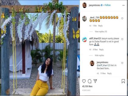रसेल की खराब फॉर्म को देखकर कुछ फैंस ने उनकी वाइफ जेसिम लोरा को सोशल मीडिया पर ट्रोल करने की कोशिश की। लेकिन क्रिकेटर की पत्नी ने ट्रोलर्स को मुंहतोड़ जवाब दिया। एक इंस्टाग्राम यूजर ने लिखा- जेसिम लोरा आंटी प्लीज दुबई जाइए, रसेल अच्छी फॉर्म में नहीं हैं। इसपर जेसिम लोरा ने ट्रोलर को करारा जवाब दिया और रिप्लाई देते हुए लिखा- वह अपनी बेस्ट फॉर्म में है।