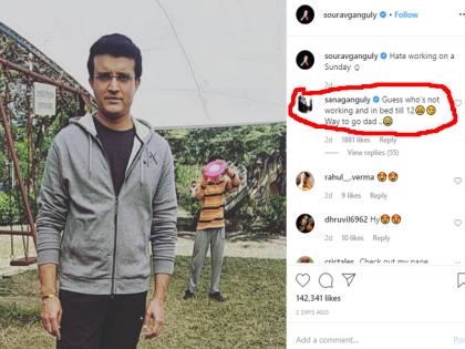 गांगुली की इस फोटो पर उनकी बेटी सना ने उन्हें ट्रोल कर दिया और कमेंट किया, 'अंदाजा लगाइए कि कौन काम नहीं कर रहा है और 12 बजे तक बिस्तर पर है। ऐसे ही लगे रहें डैड।'