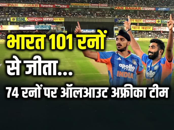कटक में खेले गए पहले T20 इंटरनेशनल मुकाबले में टीम इंडिया ने शानदार प्रदर्शन करते हुए दक्षिण अफ्रीका को 101 रनों से करारी शिकस्त दी। भारत ने पहले बल्लेबाजी करते हुए 20 ओवर में 6 विकेट पर 175 रन बनाए, जिसके जवाब में अफ्रीकी टीम मात्र 74 रन पर ढेर हो गई। यह स्कोर दक्षिण अफ्रीका का T20I इतिहास का सबसे न्यूनतम स्कोर साबित हुआ।