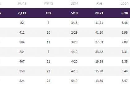 सुनील नरेन ने अपना आईपीएल करियर 2012 में शुरू किया था और उन्हें 100 विकेट पूरे करने में 86 मैच लगे और इसके लिए उन्होंने 2113 रन खर्च किए। नरेन ने सबस अधिक 26 विकेट किंग्स इलेवन पंजाब के खिलाफ लिए हैं, जबकि 23 विकेट दिल्ली डेयरडेविल्स के खिलाफ झटके हैं।