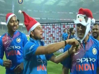जीत के बाद भारतीय खिलाड़ी क्रिसमस ईव मनाते नजर आए और सांत क्लॉज की टोपी पहनकर मैदान में जश्न मनाया।