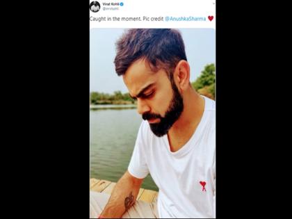 दरअसल विराट कोहली की इस वाइट टी-शर्ट में उनकी वाइफ अनुष्का शर्मा के नाम का पहला अक्षर A छपा हुआ है, जिस पर दिल का निशान भी बना है, जिसे फैंस काफी पसंद कर रहे हैं। विराट कोहली ने इस तस्वीर का क्रेडिट अनुष्का शर्मा को दिया है।