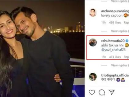 भारतीय क्रिकेट टीम के स्पिनर युजवेंद्र चहल कोरियोग्राफर धनश्री से सगाई कर चुके हैं, जिसके बाद दोनों यूएई में आईपीएल के दौरान भी साथ नजर आए। ये कपल सोशल मीडिया पर अक्सर तस्वीरें और वीडियो पोस्ट करता रहता है, जिसे फैंस काफी पसंद भी करते हैं, लेकिन इस बार युजवेंद्र चहल की तस्वीर पर क्रिकेटर राहुल तेवतिया ने टांग खिंचाई कर दी।