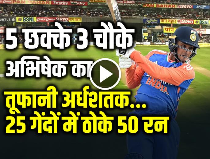 इसके बाद अभिषेक शर्मा ने तूफानी अंदाज में 25 गेंदों में 50 रन ठोके और अर्धशतक लगाया और आउट हो गए।