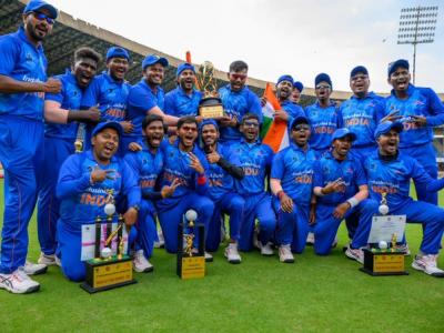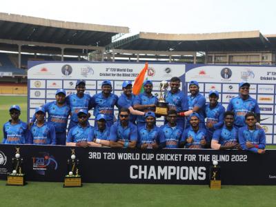 Blind T20 World Cup 2022 Champion third time three lakh rupees winning team india and one and half lakh rupees runner up Bangladesh partnership of 248 runs