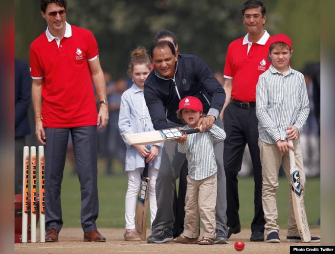 जस्टिन ट्रूडो के साथ क्रिकेट ग्राउंड पर पूर्व इंडियन कैप्टन कपिल देव और मोहम्मद अजहरुद्दीन भी मौजूद थे।