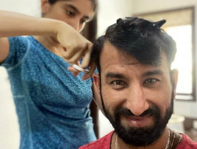 लॉकडाउन में पत्नी ने किया चेतेश्वर पुजारा का हेयरकट, दिया नया लुक, देखें तस्वीरें