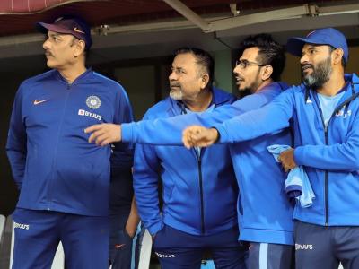भारतीय लेग-स्पिनर युजवेंद्र ने मुख्य कोच रवि शास्त्री और सहयोगी स्टाफ के साथ अपनी एक तस्वीर अपलोड की है।