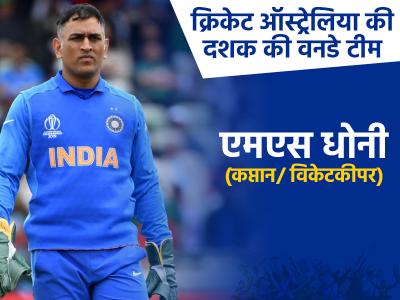 वर्ल्ड कप विजेता कप्तान एमएस धोनी को क्रिकेट ऑस्ट्रेलिया ने अपनी दशक की वनडे टीम का कप्तान चुना है।