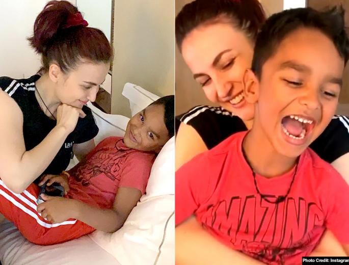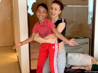 Elli Avram having fun with Shikhar Dhawan son Zoravar and write Love Love Love checkout dhawan wife ayesha elli Zoravar photos