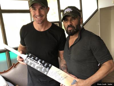 भारत आए इंग्लैंड के क्रिकेटर केविन पीटरसन ने बॉलीवुड के अभिनेता सुनील शेट्टी से मुलाकात की