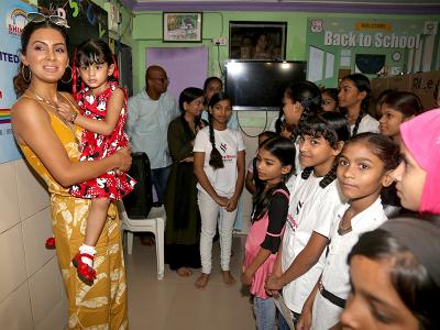 Harbhajan Singh Lohri celebration Pics with daughter hinaya and wife geeta basra from girls foundation in mumbai Dharavi, see photos